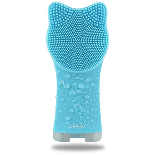 VRAIKO MIA Facial Cleansing Brush, Waterproof Rechargeable Face Cleansing Brush, with Soft Silicone and Adjustable Sonic Vibration, for Deep Cleansing Gentle Exfoliating and Massaging (Blue)