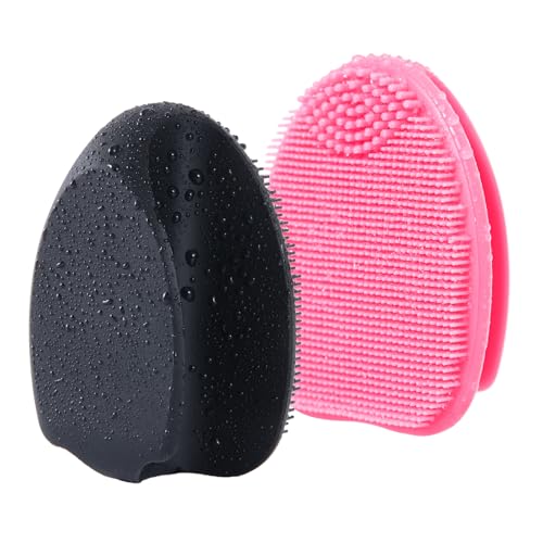 HIEERBUS Silicone Face Scrubber,Manual Exfoliating Brush,Handheld Facial Cleansing Brush for Women Men-Blackhead Removing Pore Cleansing Massaging for Sensitive, Delicate, Dry Skin (Black+Pink)