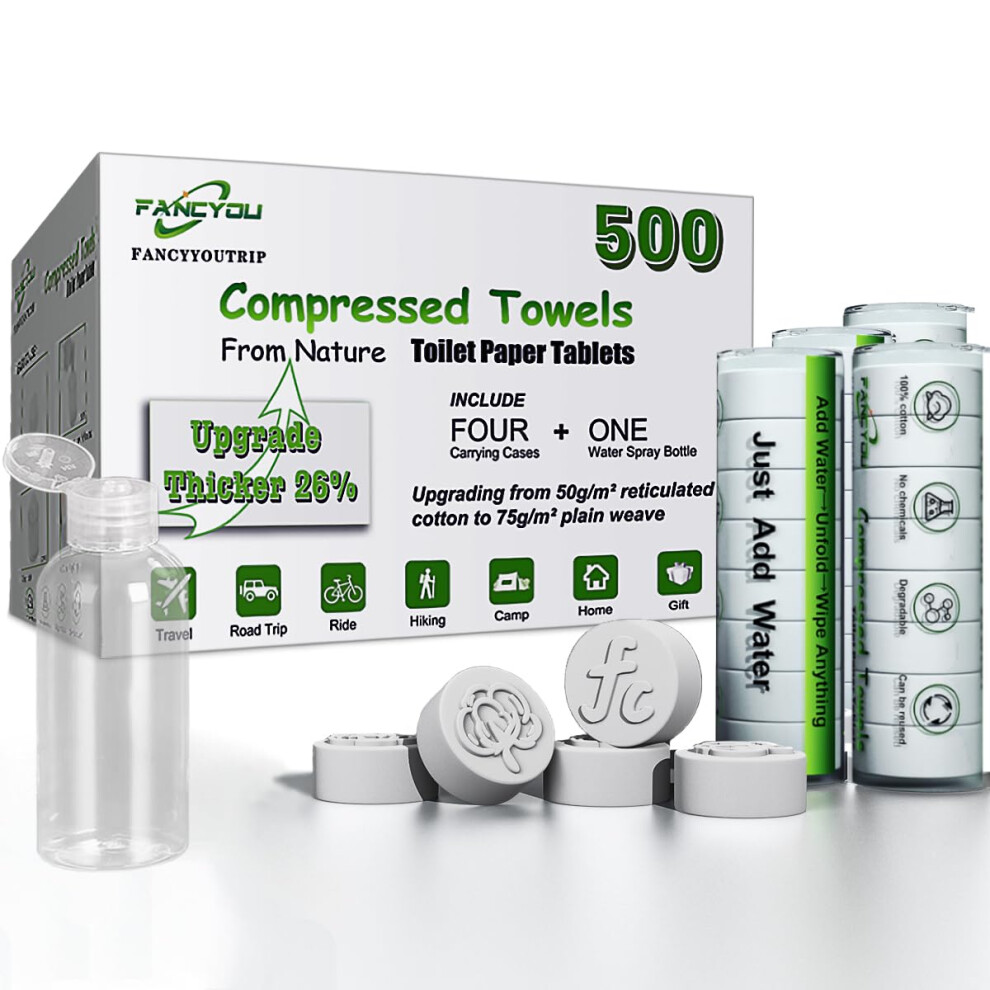 Fancyou Compressed Disposable Face Towel 500 PCS Thicken Facial Cleansing Cloths Towelettes Mini Travel Size Towel Compact Portable Wash Cotton Wipes