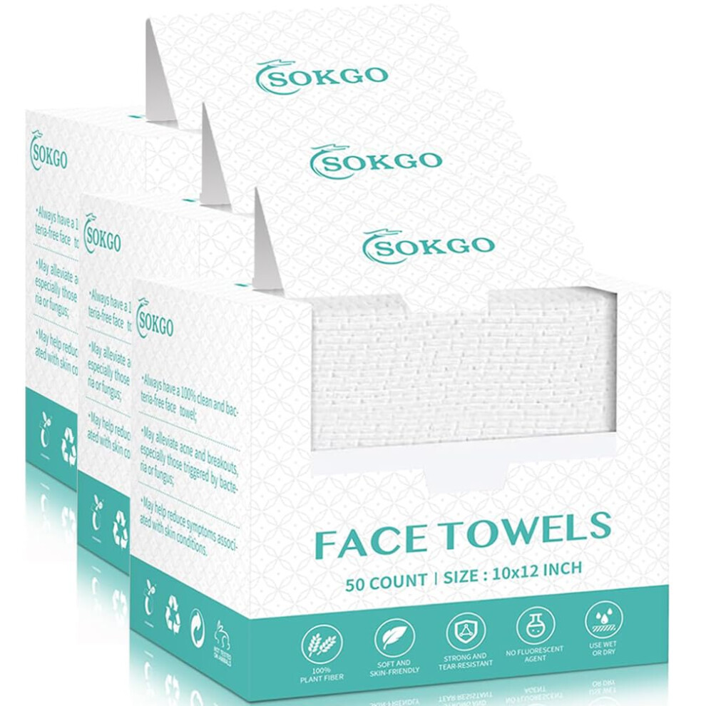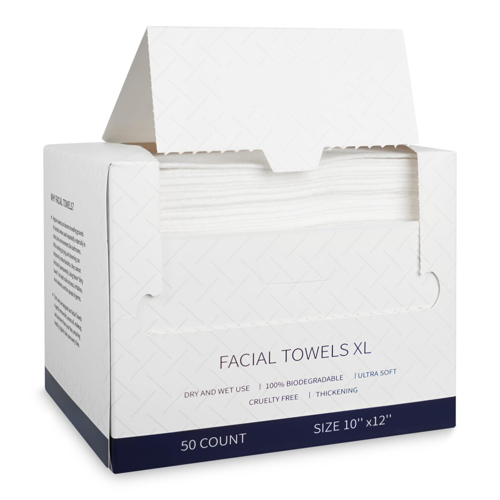 Ultra Soft Disposable Face Towels 50 Count, Biodegradable Facial Cleansing Cloths for Travel and Skincare