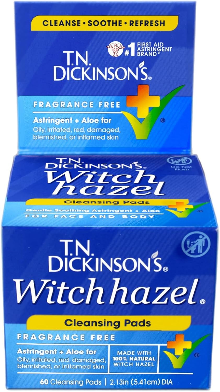 Dickinson's Witch Hazel Pads 60 Count Facial Cleansing Cloths for Skin Care