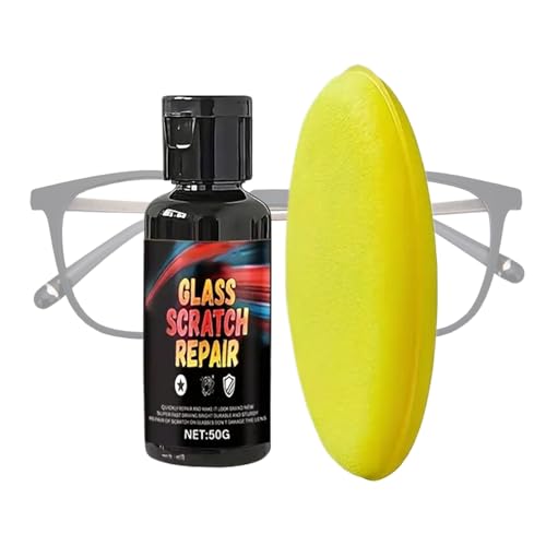 Eyeglass Scratch Remover, 50g Yellowing Cleaner, Balm with Sponge for Scratched Glasses Lens Repair, Oxidation Foggy Discoloration Marks Clarity Daily Wear, Lens Restoration Kit, Clear Maintena