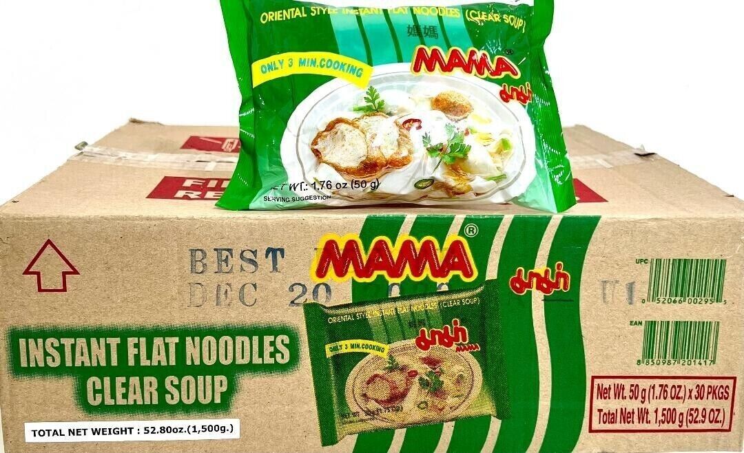 MAMA Instant Flat Noodles Clear Soup Flavour Rice Vermicelli 50g (Box of 30)