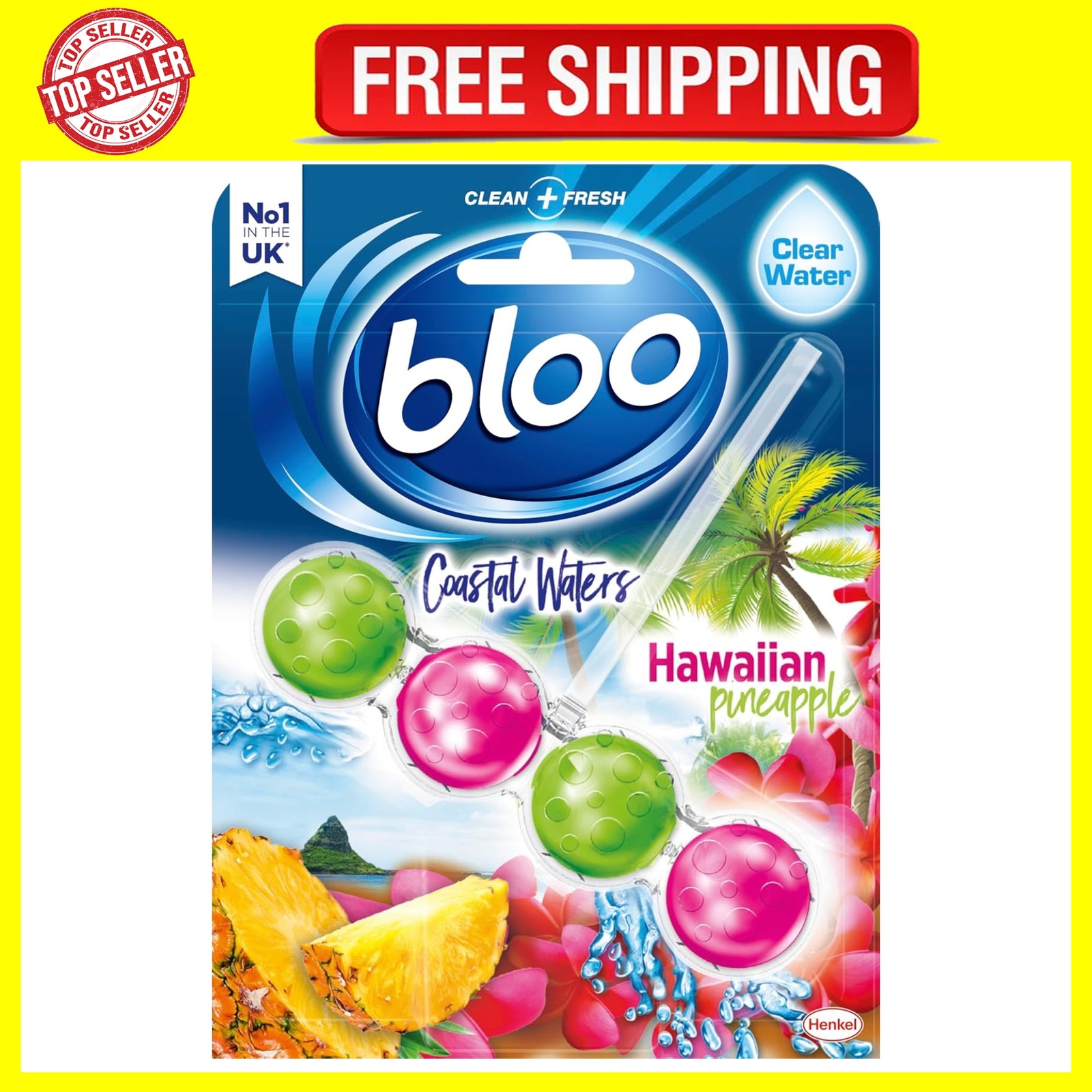 Bloo Toilet Rim Block Coastal Waters Hawaiian Pineapple (50G), Clear Water Toile