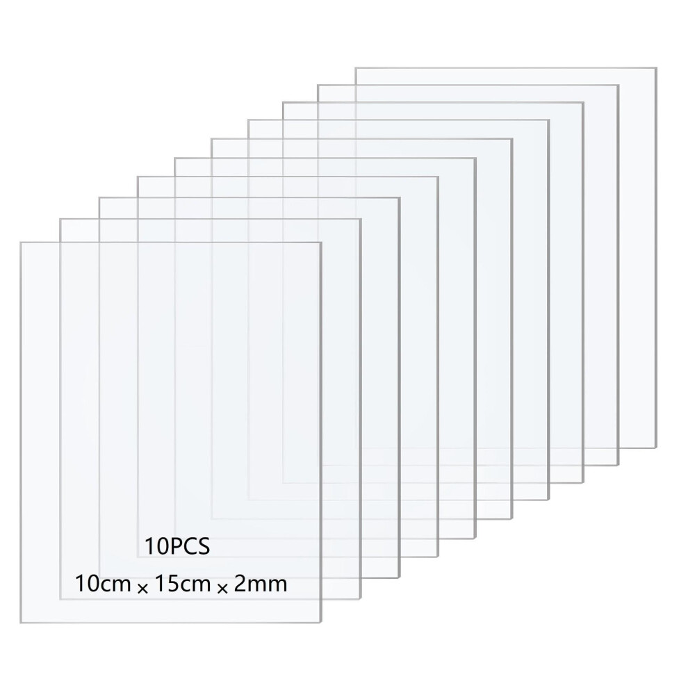 Taiyeestar 10 Pcs Clear Acrylic Sheets, 2mm Thick Clear Perspex Sheet, Transparent Plastic Sheet Acrylic Board, for Picture Frame Glass Replacement, Display Projects, Painting, DIY Craft (10 * 15cm)