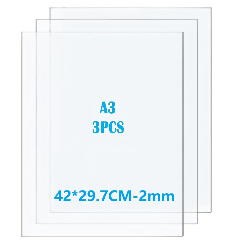 Taiyeestar 3 Pack 42 x 29.7cm Plastic Sheet, A3 Clear Acrylic Perspex Sheets for Househld Decoration, Display, Picture Frame, Painting - 2mm Thick