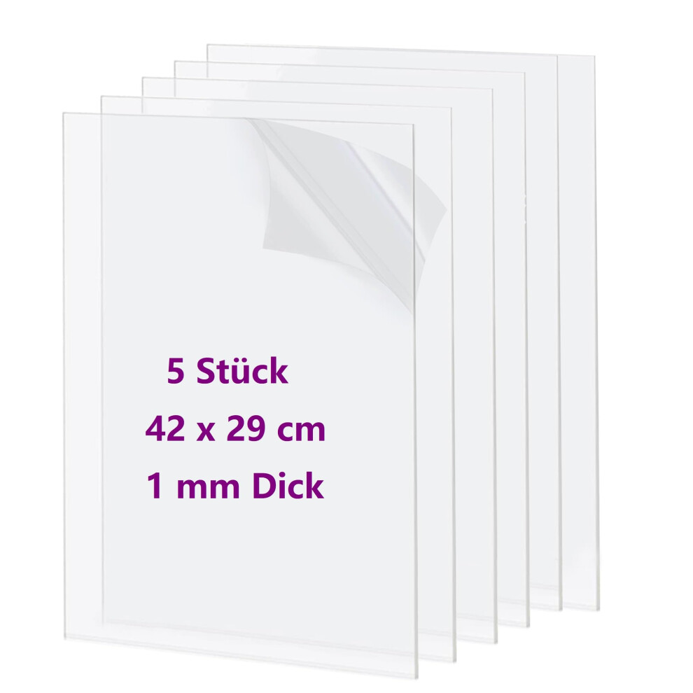 5 Pack 42x29cm Clear Acrylic Sheet 1mm Thick, Clear Perspex Sheet, Plastic Sheet, Acrylic Board for Wall Crafts Glass Picture Frame DIY Projects Signs
