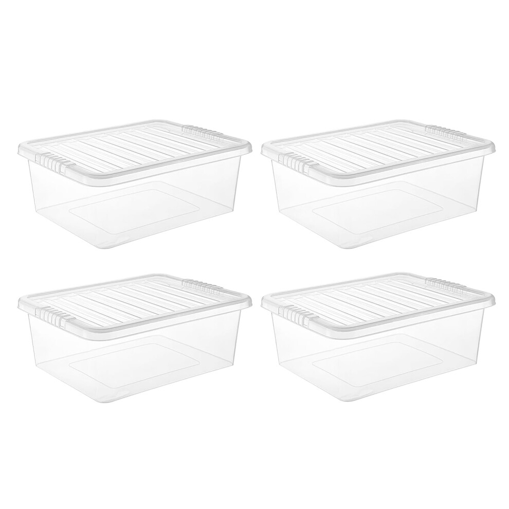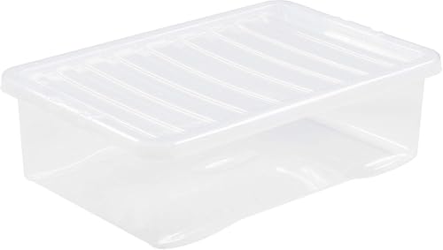 Wham Clear Plastic Storage Boxes With Lids Home Office Stackable Nestable Container Box, 32L Easy fit Underbed Protective Storage Box, 60.00 x 40.00 x 18.00 cm (Set of 4)
