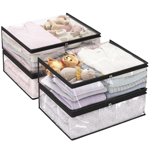 Fixwal 4pcs Clear Storage Boxes, 35L/9.5Gal, PVC Fabric, Zipper, for Clothes, Blankets, Bed Sheets, Closet Organizer