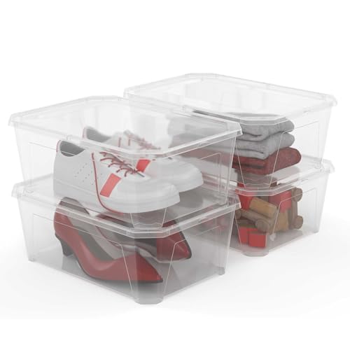 Sundis Fly Box, Set of 4 11L Clear Plastic Storage Boxes with Lid, Stackable and Stackable, Ideal for Shoes, Accessories, Laundry, Toys