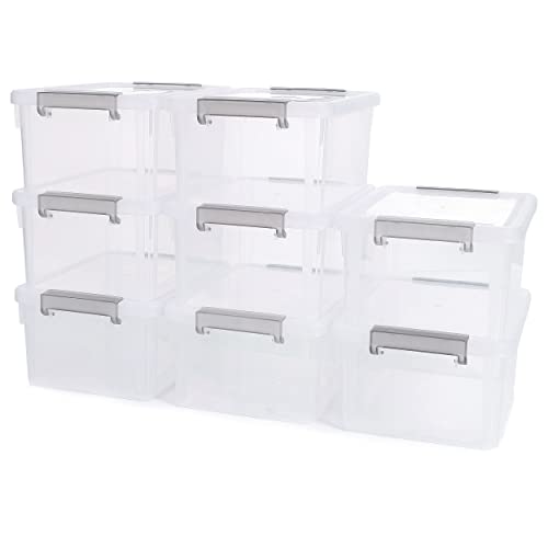 Citylife 8 Packs 3L Small Plastic Storage Box with Lids, Stackable Clear Storage Boxes with Handles, Transparent, 20.5X15X10.5cm