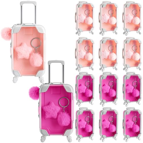 Fyozyon 36 Pcs Mini Suitcase Party Favor Box with Plush Ball Keychains and Hair Clips 6.69 x 3.74 x 1.97 Inches Clear Mini Suitcase Gift Box for Travel Baby Shower Wedding Holiday (Rose Pink)