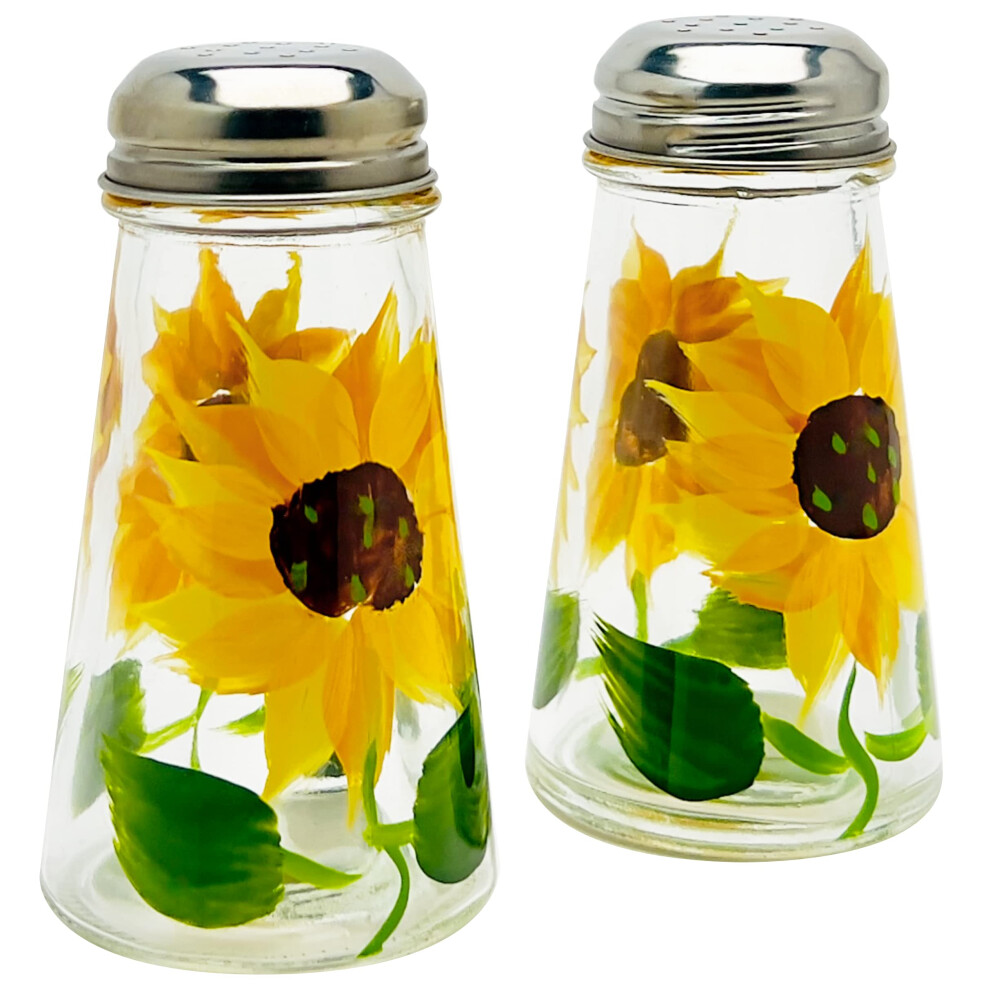 Containly Hand-Painted Sunflower Glass Salt & Pepper Shaker Set - Elegant Gift Boxed Kit in Protective Clear PVC Gift Box - Perfect for Gifts, Home
