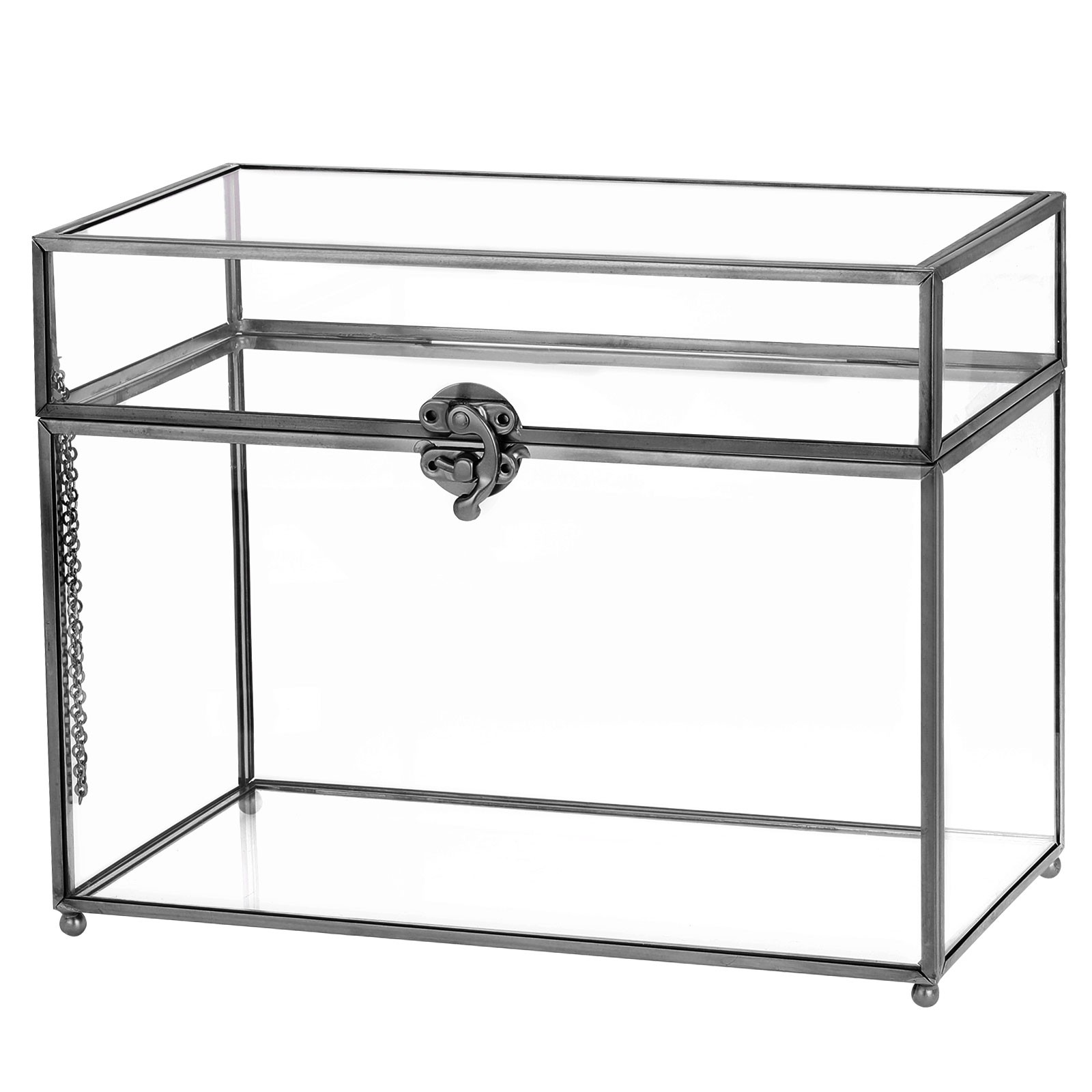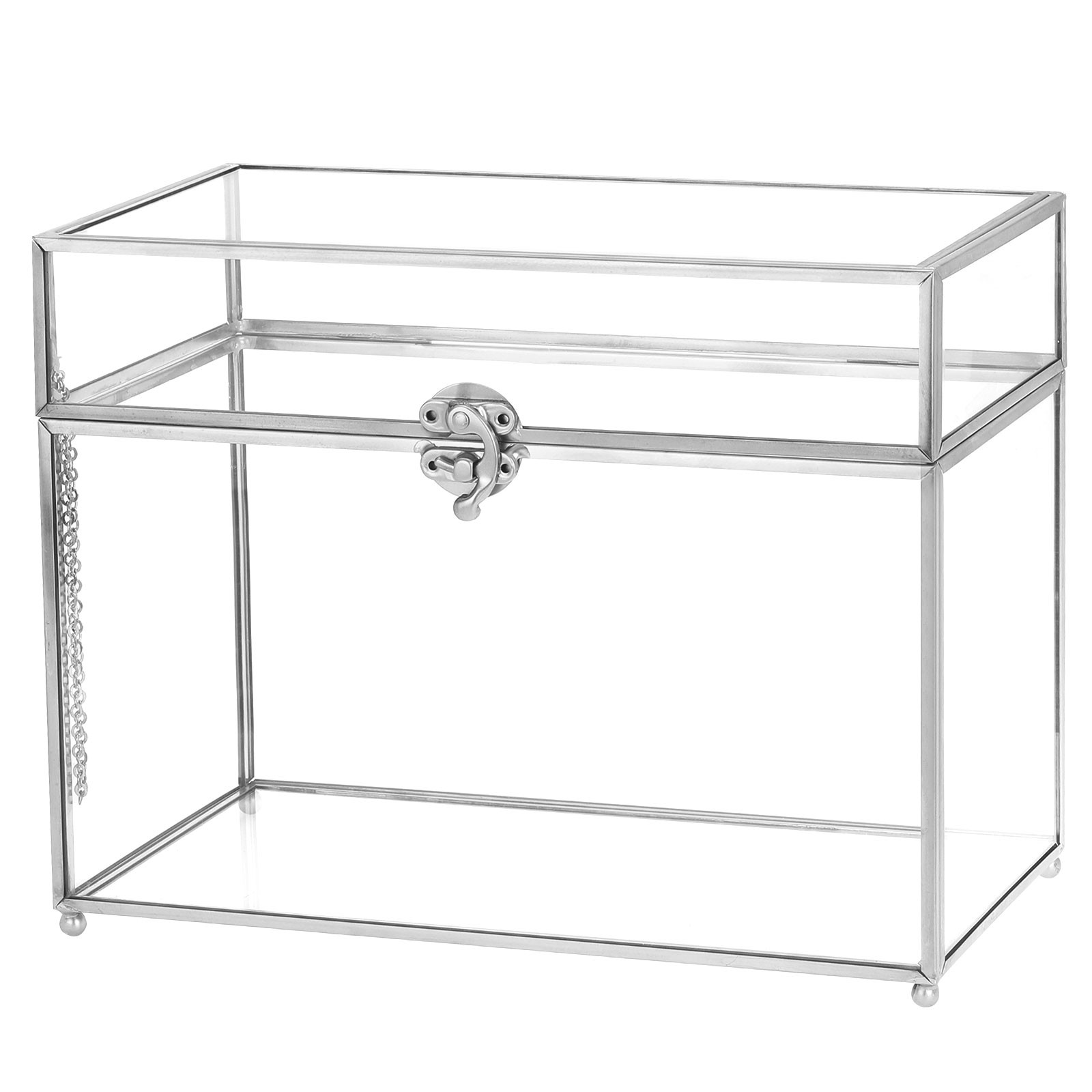 10" Glass Wedding Card Box with Lock, Clear Gift Cards Box Silver