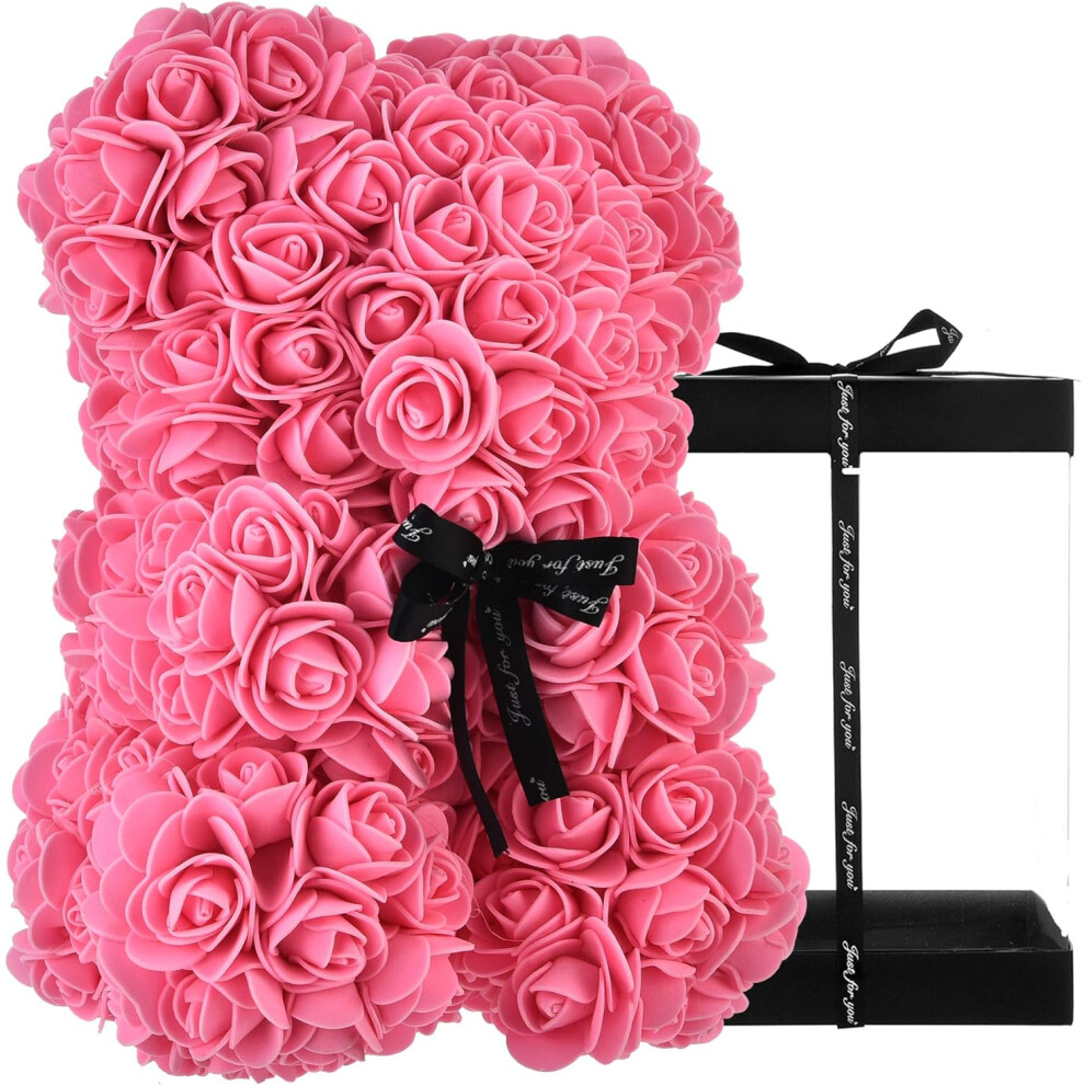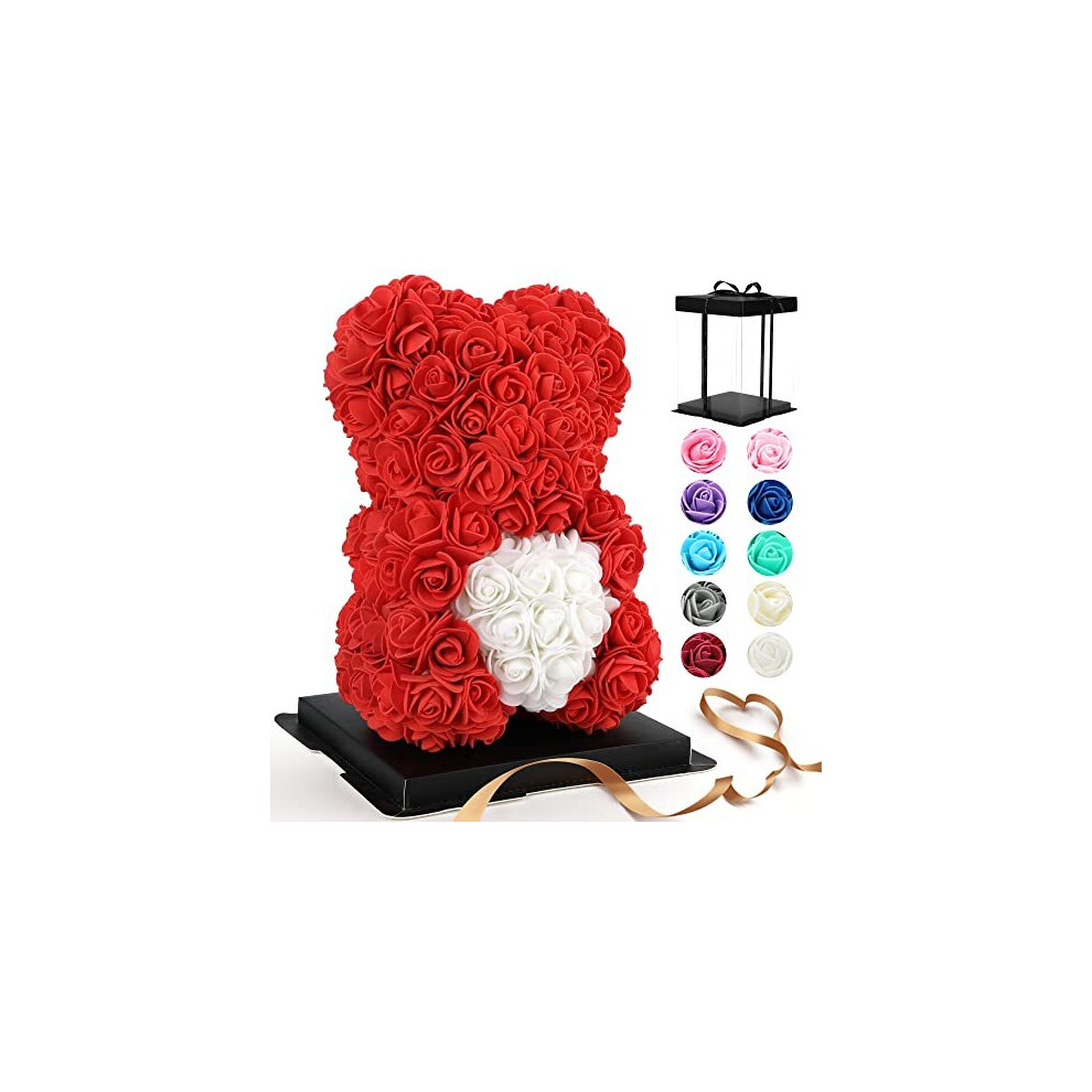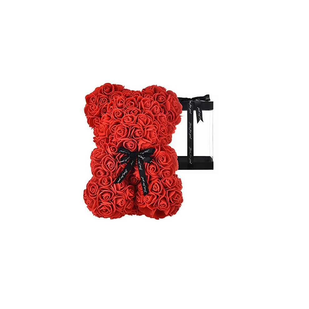 AZXU Rose Bear - rose teddy bear on Every Rose Bear -flower bear Perfect for Anniversary's,Rose Bear, Mothers, rose teddy bear. - Clear Gift Box