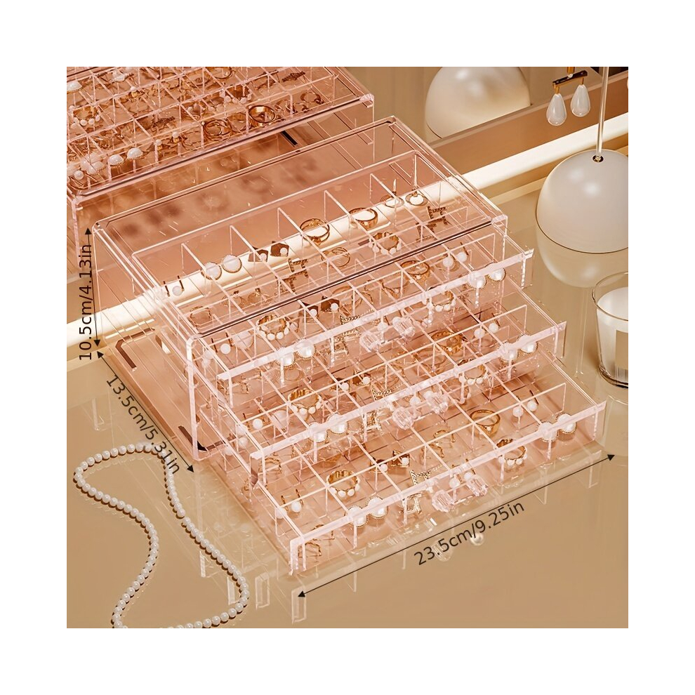 Jewelry Organizer with 5 Drawers Clear Acrylic Box Gift Stackable Velv
