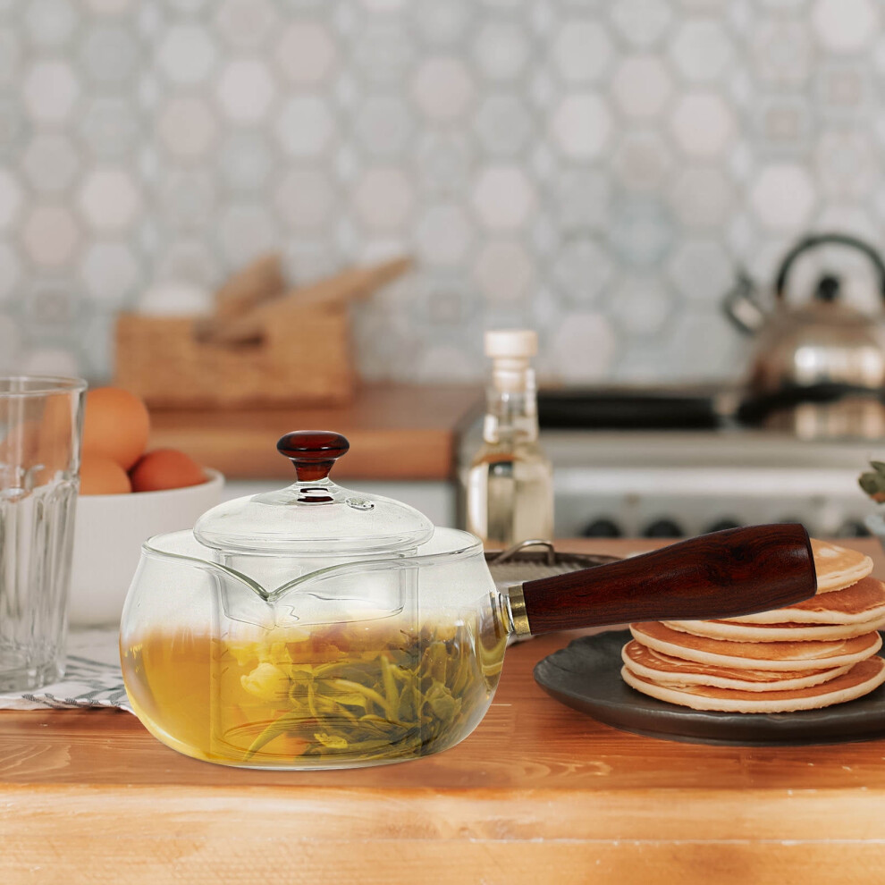 Glass Tea Heating Pot Clear Glass Tea Kettle Handheld Filter Tea Kettle 500ml