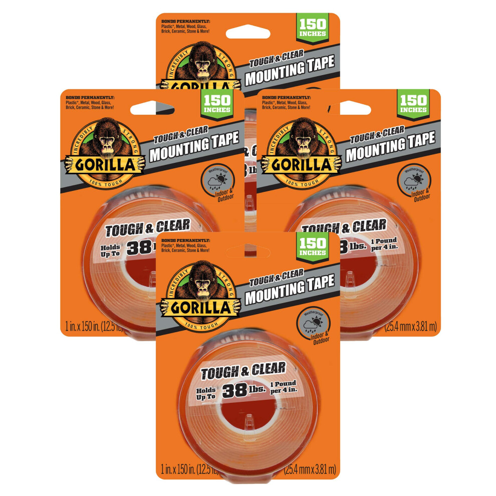 Gorilla Tough & Clear Double Sided Adhesive Mounting Tape Extra Large 1"""" x 150"""" Clear (Pack of 4)
