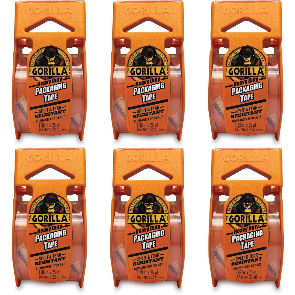 Gorilla Heavy Duty Packing Tape with Dispenser for Moving, Shipping and Storage, 1.88" x 25 yd, Clear, (Pack of 6)