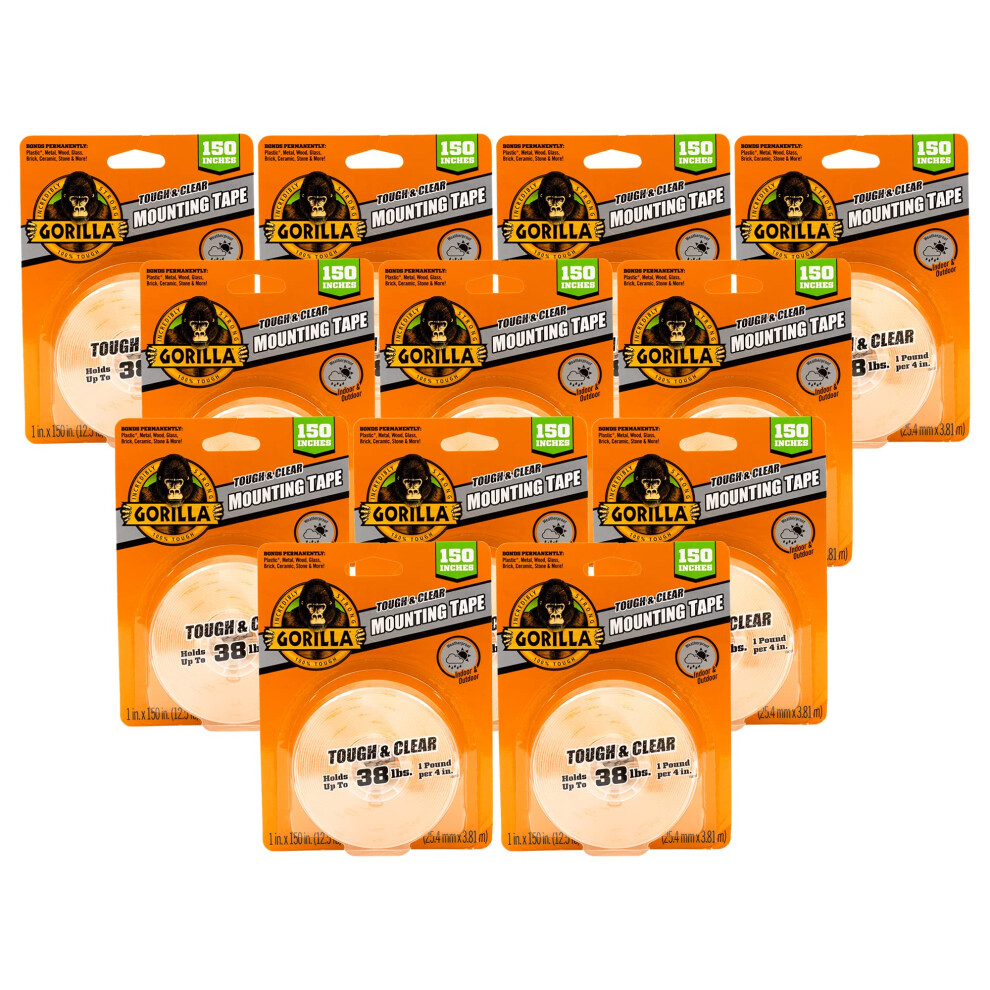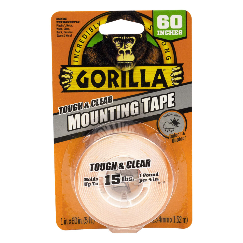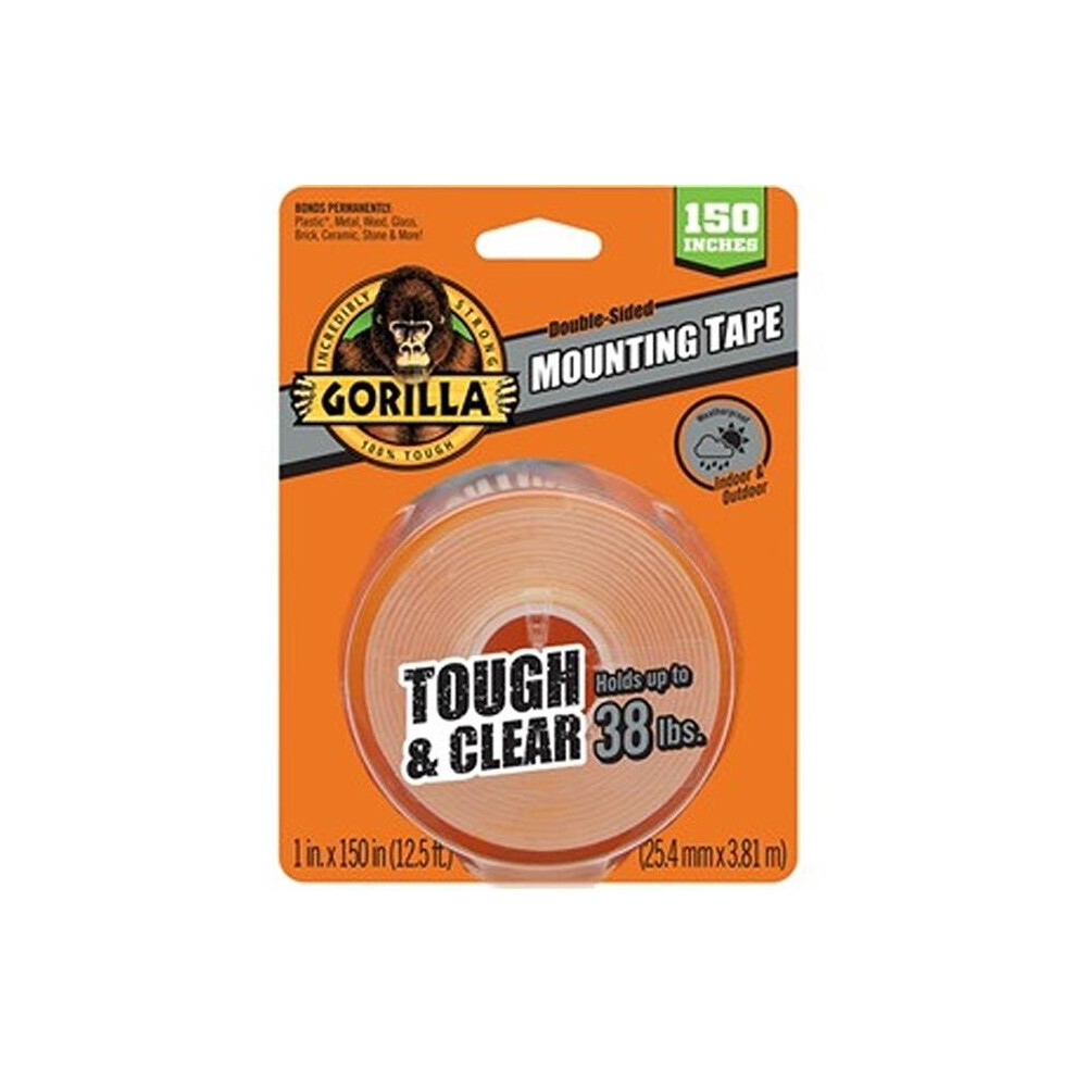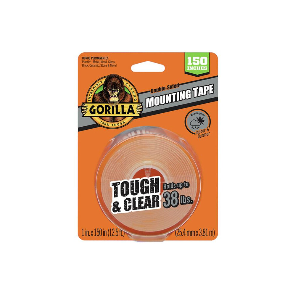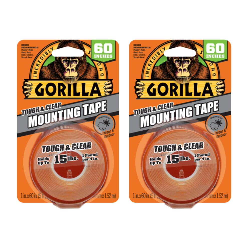 Gorilla Clear Double-Sided Mounting Tape â Strong Adhesive for Indoor/Outdoor Use, 1.5m (2 Pack)