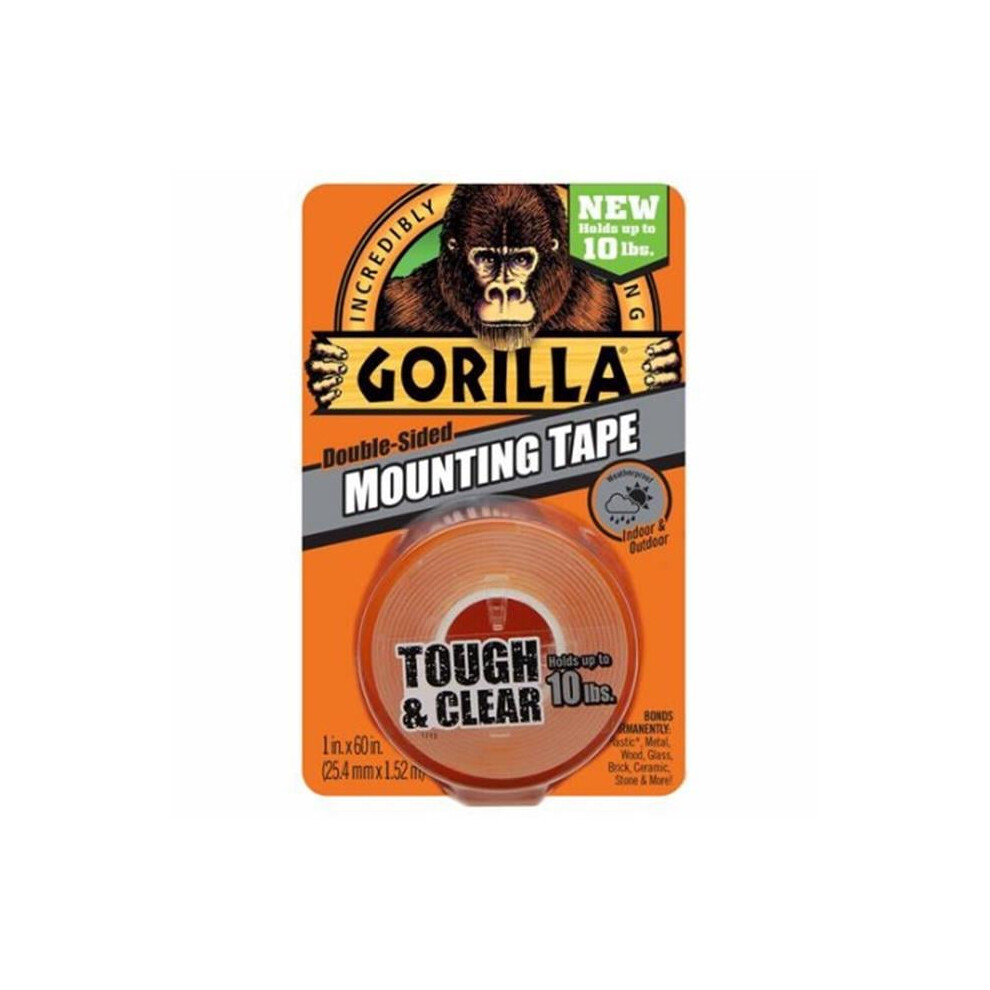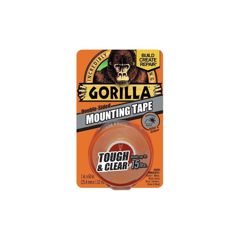 Gorilla Tough & Clear; Double Sided Mounting Tape; Weatherproof; 1"""" x 60""""; Clear; (Pack of 1)