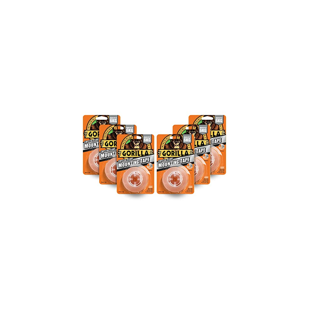 Gorilla 3044100 Double Sided Mounting Tape Clear 1.5m (6 Pack)