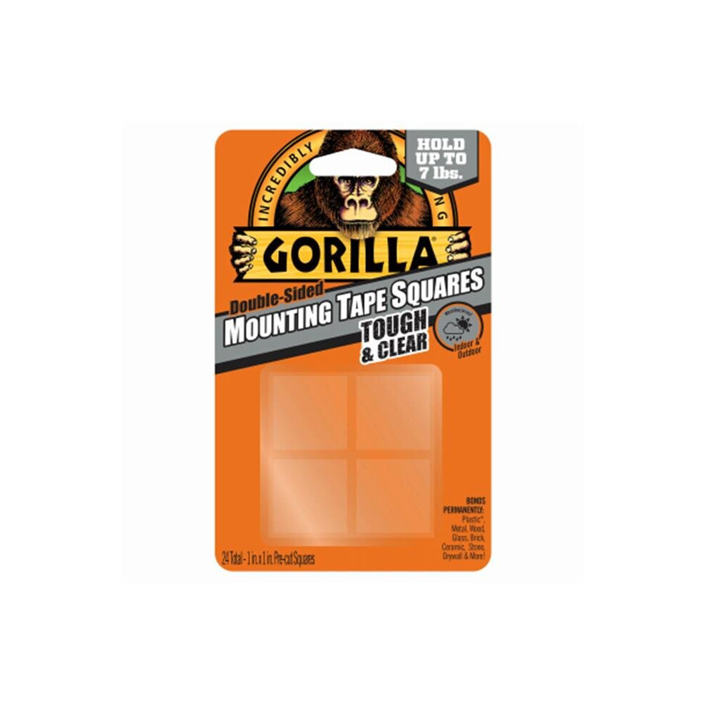 Gorilla Mounting Tape Squares Clear 24 Pack 3044111 GG00608