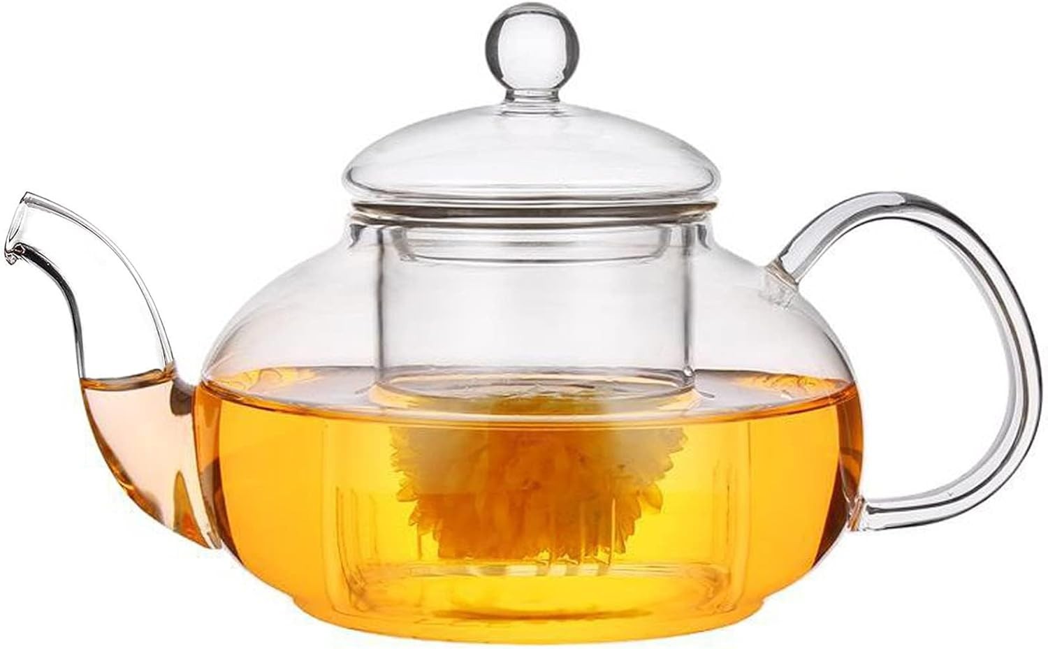 Clear Glass Teapot with Removable Infuser, Clear Tea Kettle Stovetop Safe,Round