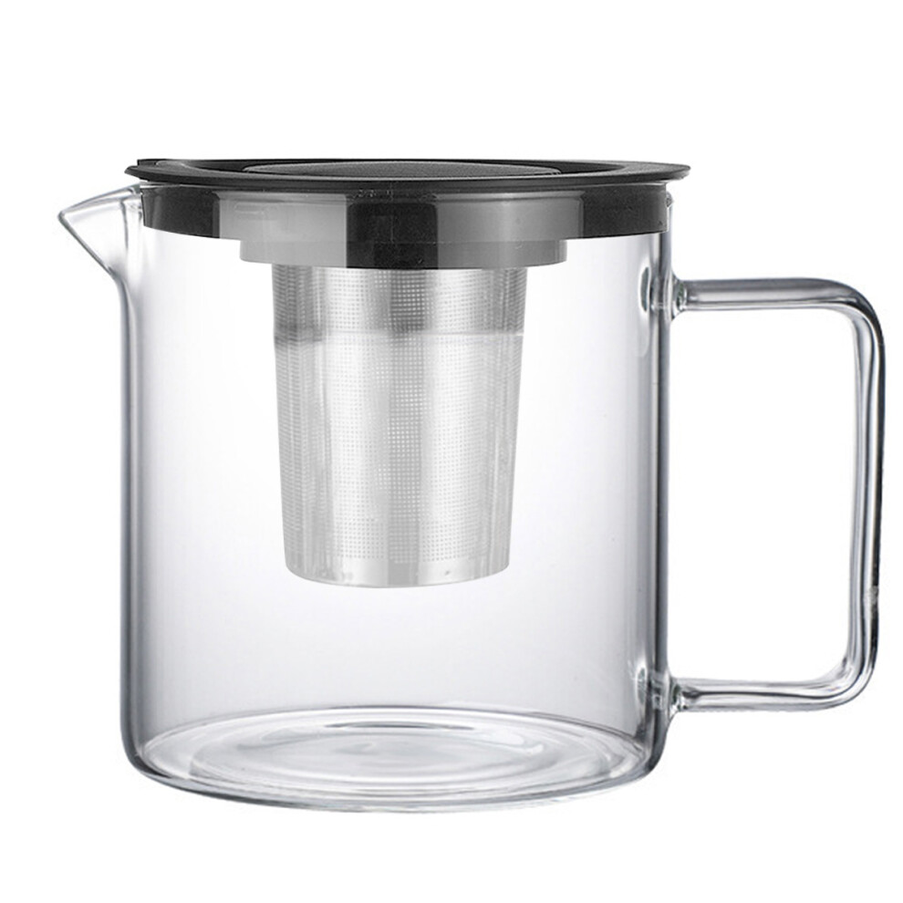 Sophisticated Glass Teapot, Ergonomic Handle Clear Kettle With Removable Stainless Steel Infuser, Designed For Brewing Cold Brew Coffee And Iced Tea E
