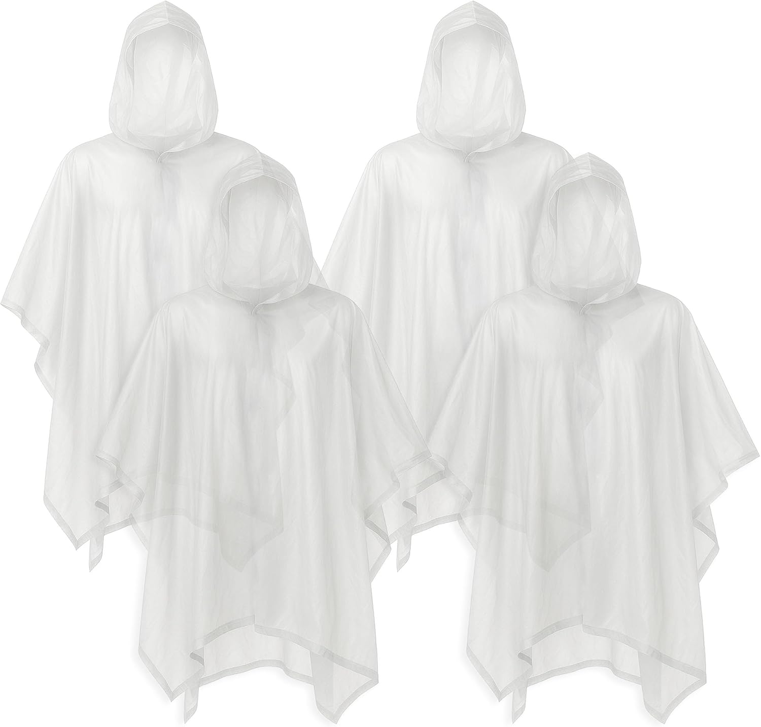4Pk Rain Poncho, Clear Waterproof Coats, Raincoats, and Capes for Adults, Women,
