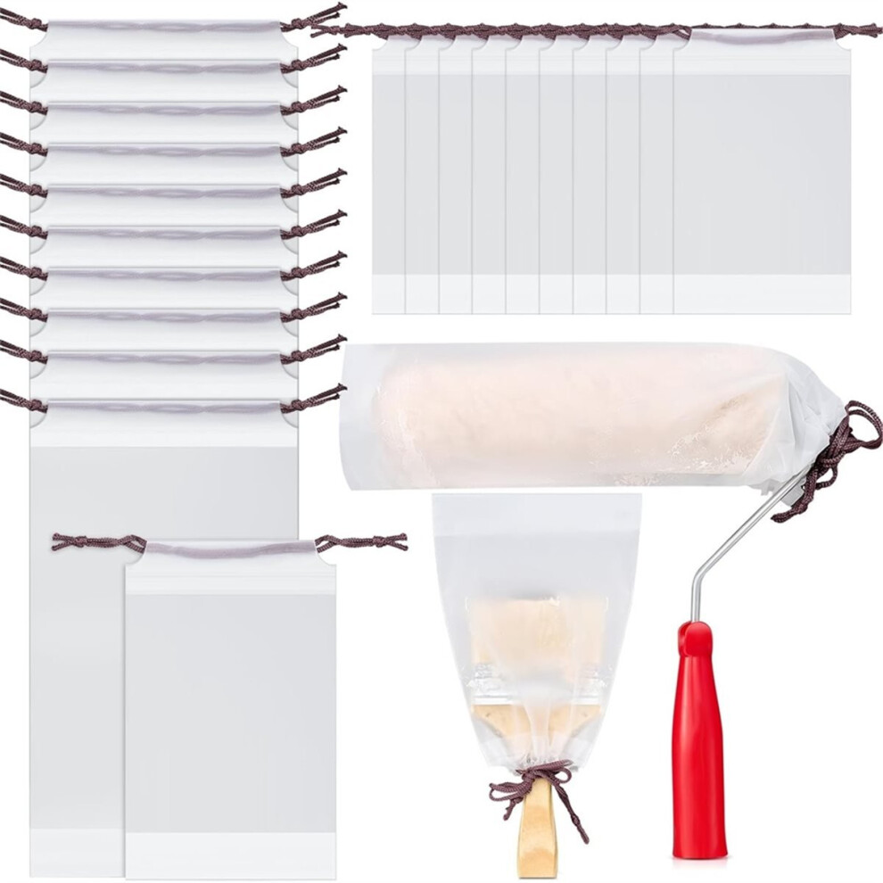 20Pcs Paint Brush Covers & Roller Covers Clear Plastic Paint Poncho Wet Brush Storage Bag for Keep Roller Wet Organizer