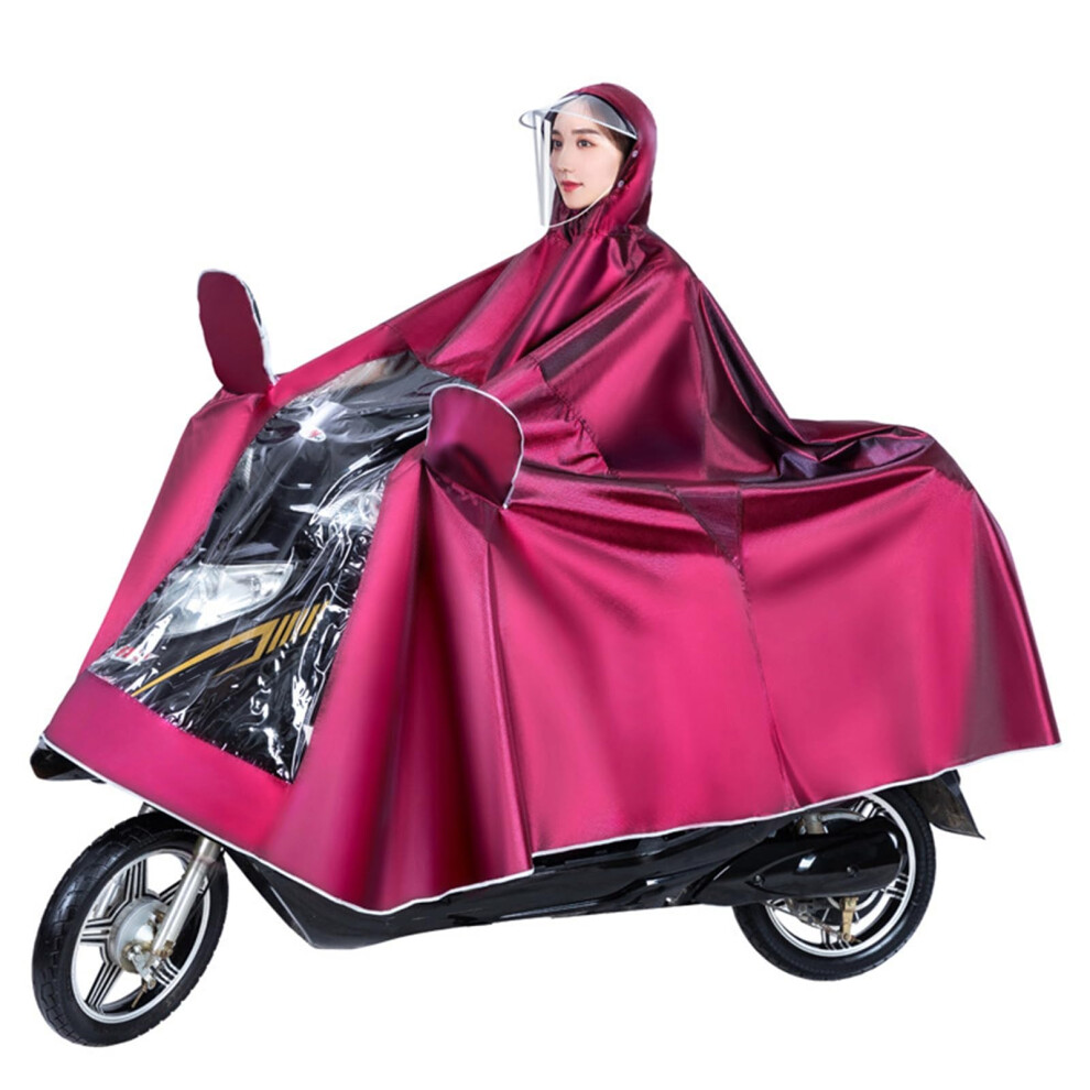 Motorcycle Adults Rain Poncho Clear Brim Detachable Face Guard 2 Person Outdoor Cycling Bike Raincoat Rain Gear Cape Cover Red 5XL