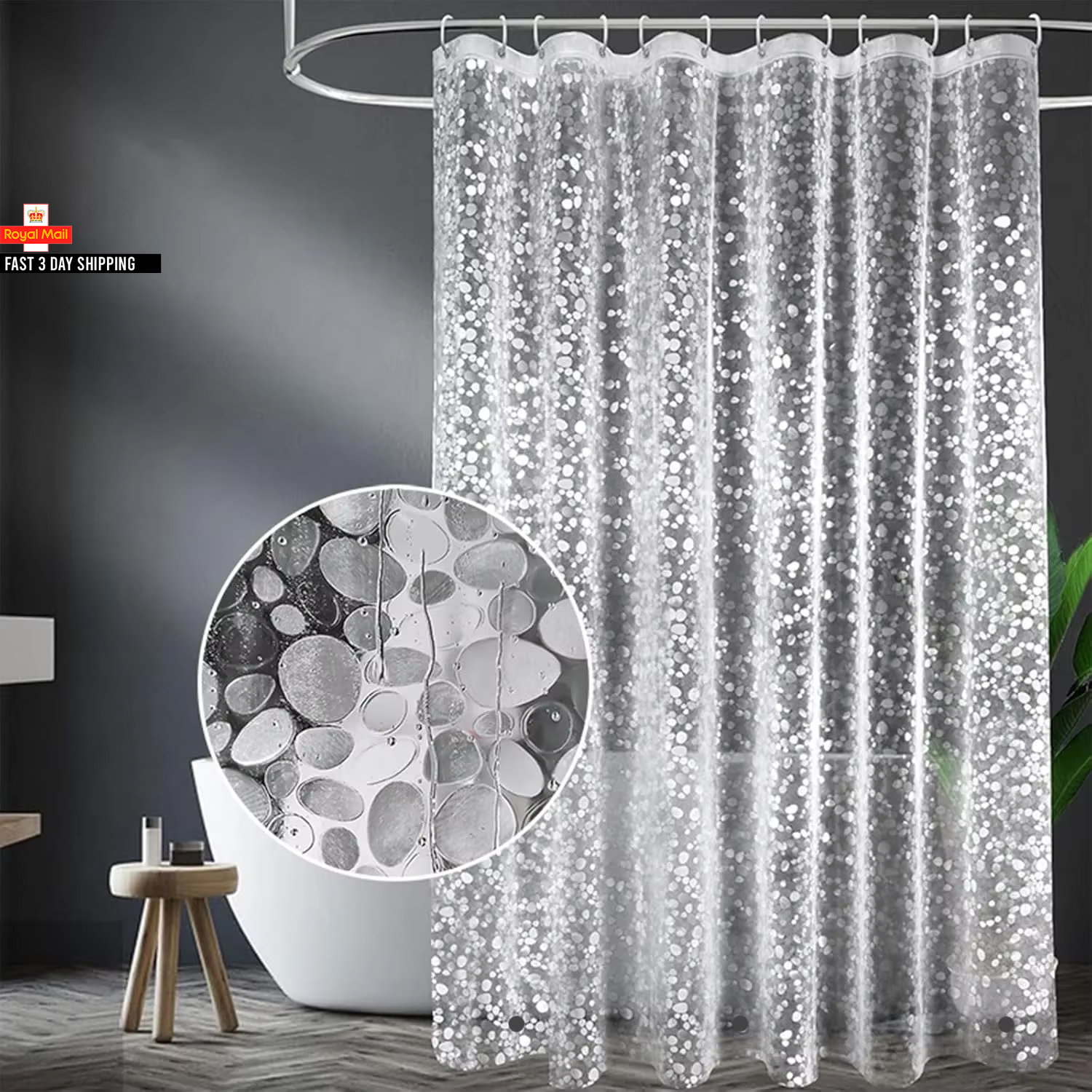 1Pc Pebble Clear Shower Curtain with Magnets Metal Grommets, Waterproof Shower C