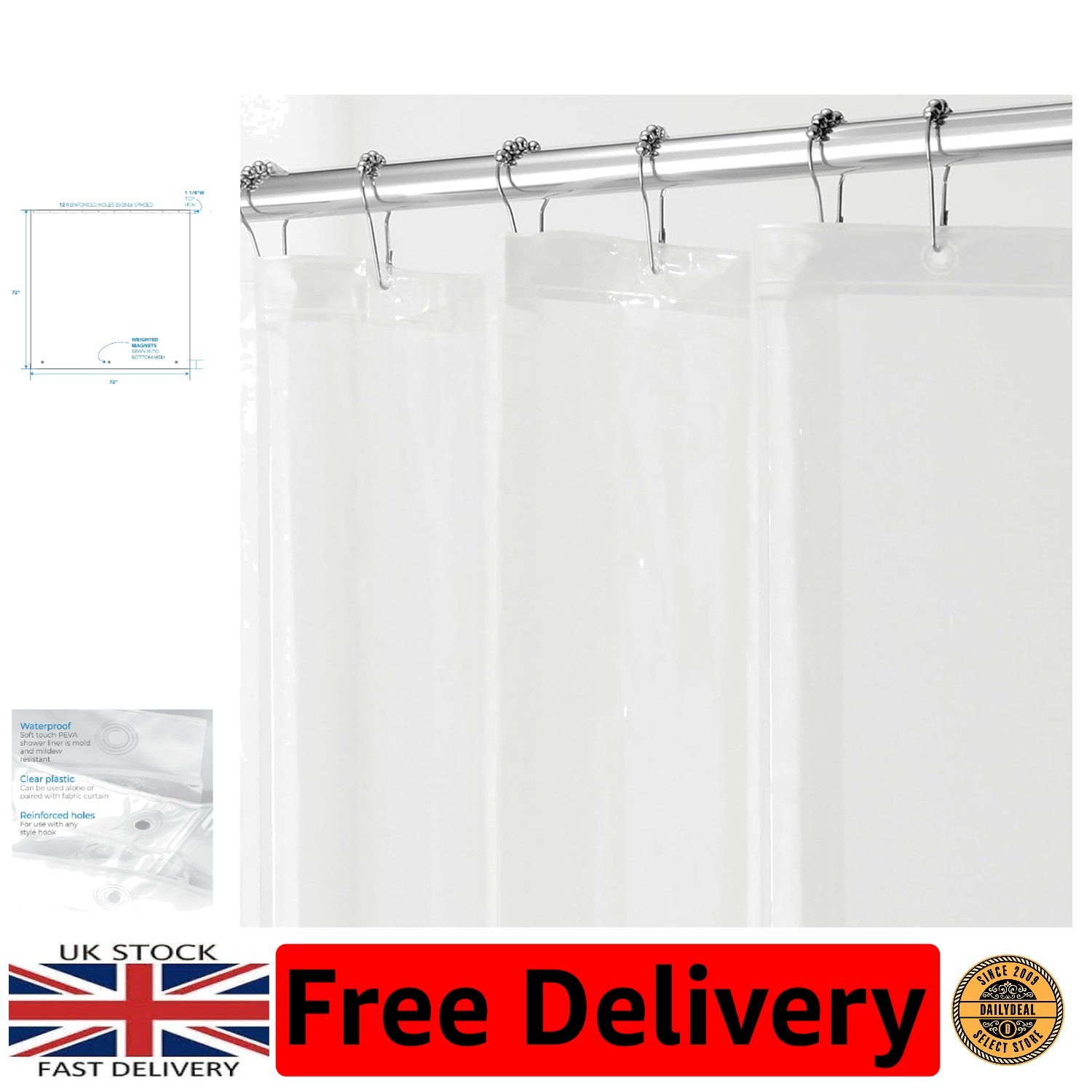 1Pc Clear Shower Curtain Liner with Bottom Magnets & Metal Grommets-Plastic Ligh