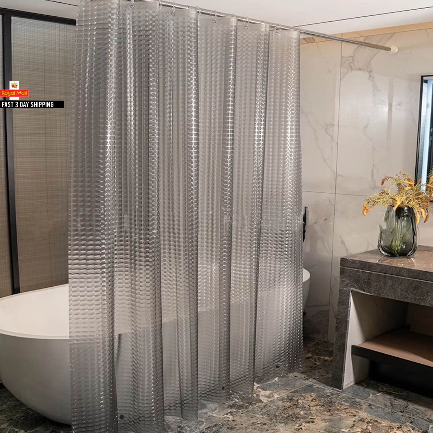 OTraki Clear Shower Curtain, 180 X 180 CM Extra Long Shower Curtain, 3D Design Weighted Bath Curtain, Anti Mould Resistant Shower Curtains, Thicken Waterproof Bathroom Curtain with 12 Curtain Hooks