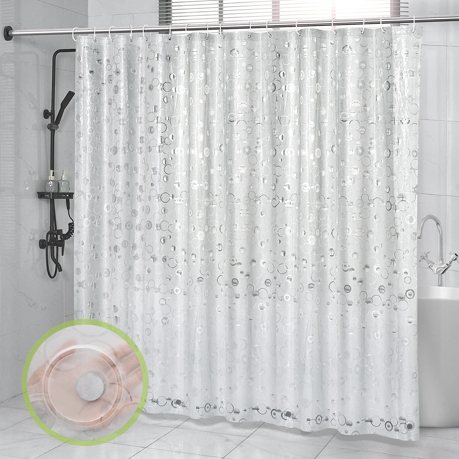EurCross Clear Shower Curtain,Mould Proof Extra Long Shower Curtain Liner with