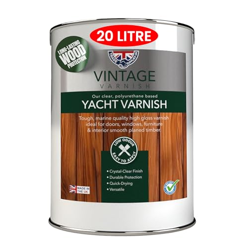 Vintage Yacht Varnish Clear Polyurethane - Wood Varnish Marine-Grade, UV-Resistant, High-Durability, Crystal-Clear Gloss Finish for Wood Protection (20 Litre) - Trade Supplies UK
