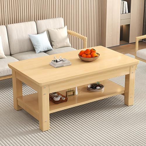 HOFUNTRE FAS-grade solid wood coffee table with sturdy corners,shelf storage, smooth finish, rivet reinforcement.Perfect for living room(Clear varnish,100x60x50cm)