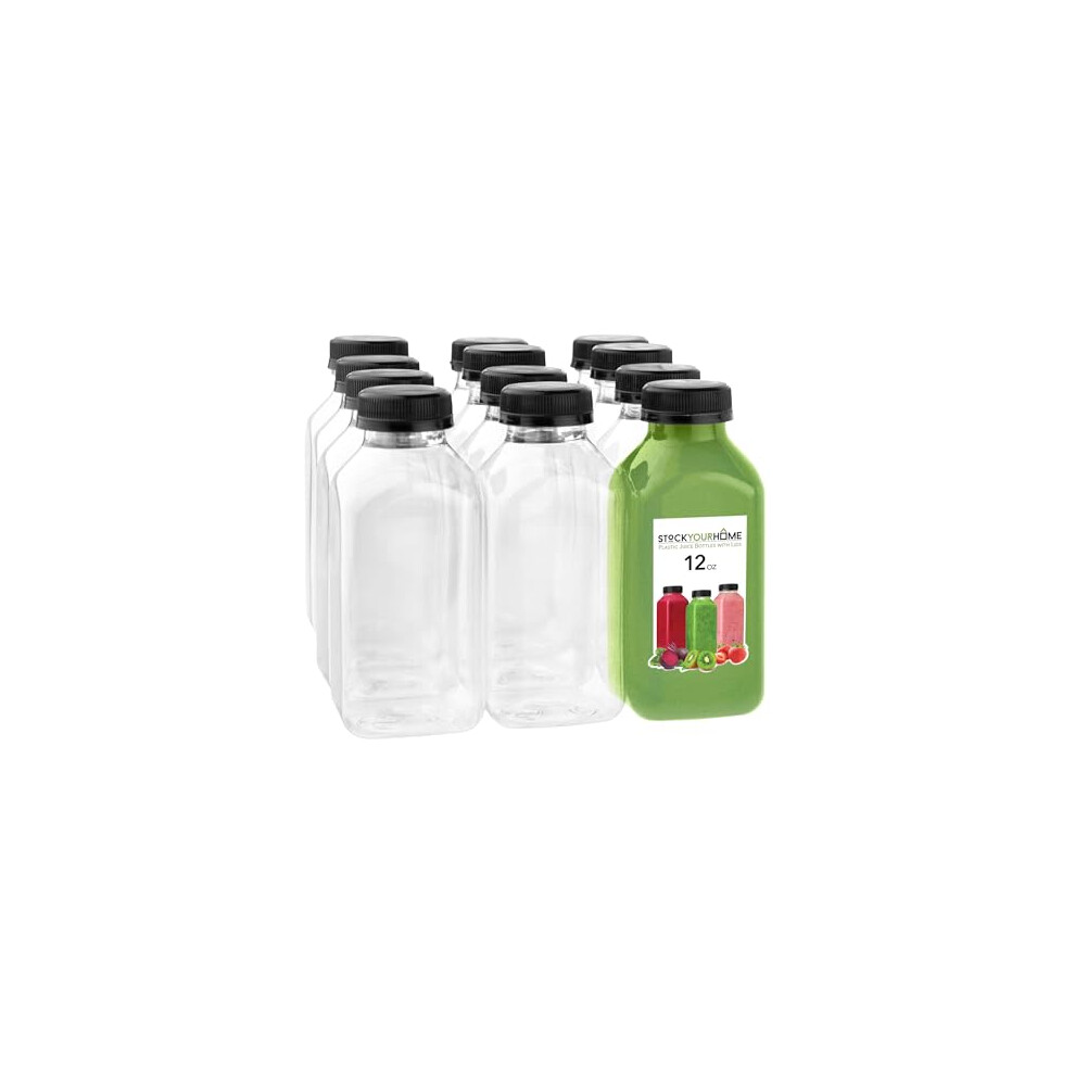 12 oz Juice Bottles with Caps for Juicing (12 pack) - Reusable Clear Empty Plastic Water Bottles - Drink Containers for Mini Fridge Juicer Shots Incl