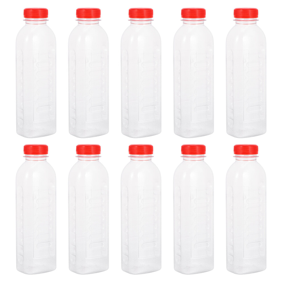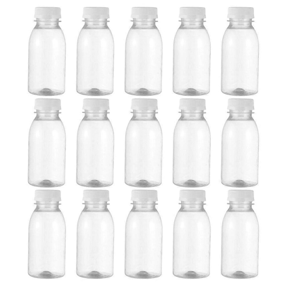 (As show, One size) 15pcs Plastic Empty Juice Bottles with Caps Clear Milk Bottles Water Bottles Beverage Bottle