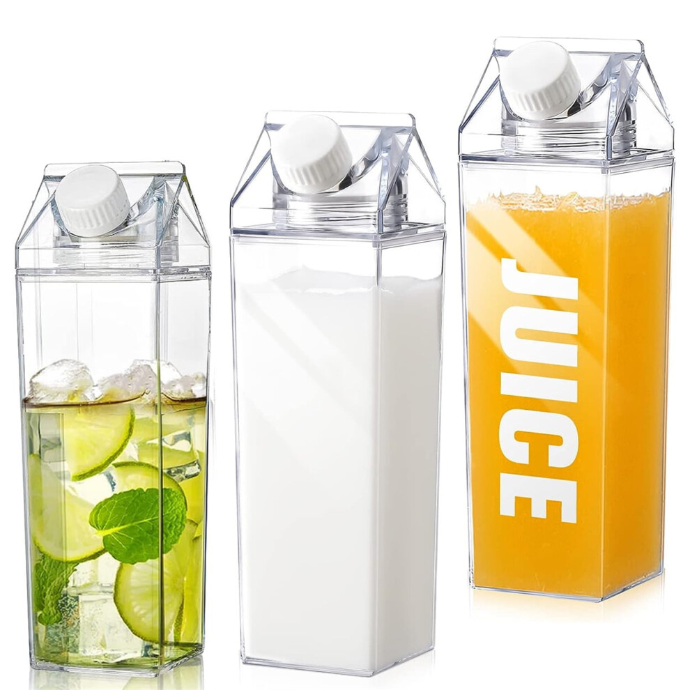 3 Pack Clear Milk Carton Water Bottles,Milk Glass Cup, Plastic Transparent Cup for Milk, Coffee, Water, Juice, Beverages, 34Oz/1000ml