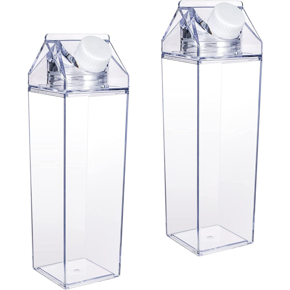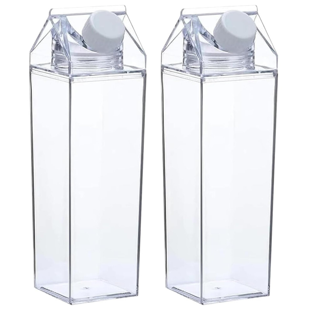 Milk Carton Water Bottle Pack of 2, 1000 ml Clear Reusable Water Bottles for Picnics Camping Milk Orange Juice