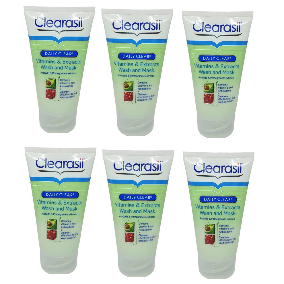 6x CLEARASIL DAILY CLEAR VITAMINS & EXTRACTS WASH AND MASK 150ML NEW (AVOCADO)
