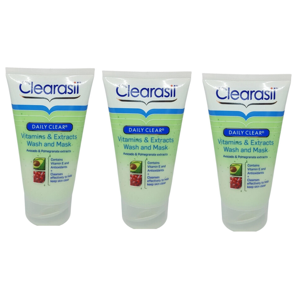 3x CLEARASIL DAILY CLEAR VITAMINS & EXTRACTS WASH AND MASK 150ML NEW AVOCADO