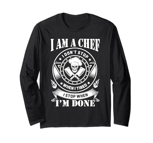 Chef Skull Cleaver Kitchen Hustle Motivational Graphic Long Sleeve T-Shirt