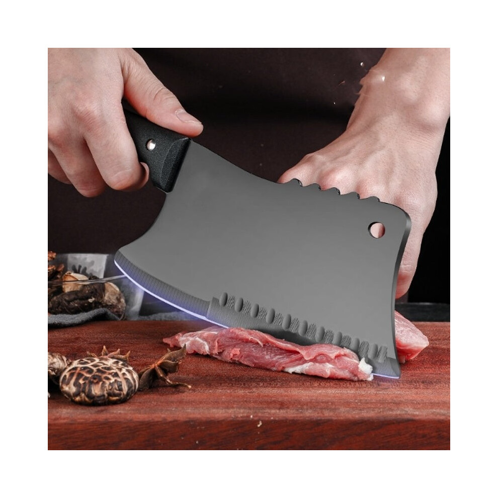 Chef's Meat Cutting Knife Stainless Steel Black Blade Kitchen Knife Slicing Knife Meat Vegetables Knife Sharp Camping Cooking Cleaver Chef Butcher