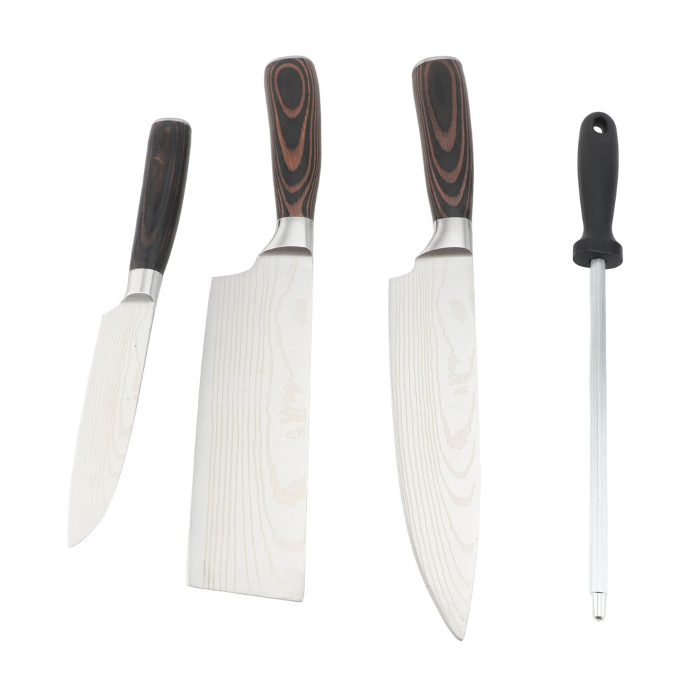 3pcs/Set Chef Knife Stainless Steel Butcher Knife Vegetable Meat Cleaver Slicing Knife Sharp Kitchen Knife Comfortable Handle