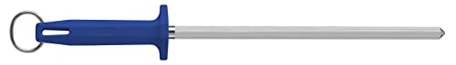Starrett Professional Knife Sharpeners Steel - BKL407-10 Knurled Finish 10 Inch (250mm) Blue Handle Hard Carbon Steel - Kitchen Knife Sharpener Rod for Honing Chef Butchers Cleaver Hunter Knife