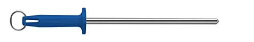 Starrett Professional Knife Sharpeners Steel - BKL408-10 Smooth Fine Finish 10 Inch (250mm) Blue Handle Hard Carbon Steel - Kitchen Knife Sharpener Rod for Honing Chef Butchers Cleaver Hunter Knife