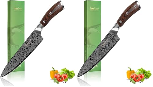 FineTool Kitchen Knife, Finetool 8 inch Professional Chef's Knives 7Cr17 Stainless Steel Vegetable Cleaver with pakkawood, Sharpest Cooking Knives Best Choice for Home, Brown (F-Chef's Knives)